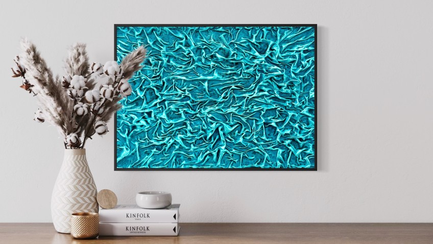 Fånga havets livfulla rytm i ett abstrakt konstverk i turkosa toner.